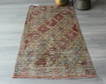Vintage Small Red Rug , Ethnic Door Mat, Bohemian Door Mat, Handwoven Door Mat , Vintage Turkish Door Mat / B-1660 / 1'5"x3'7"